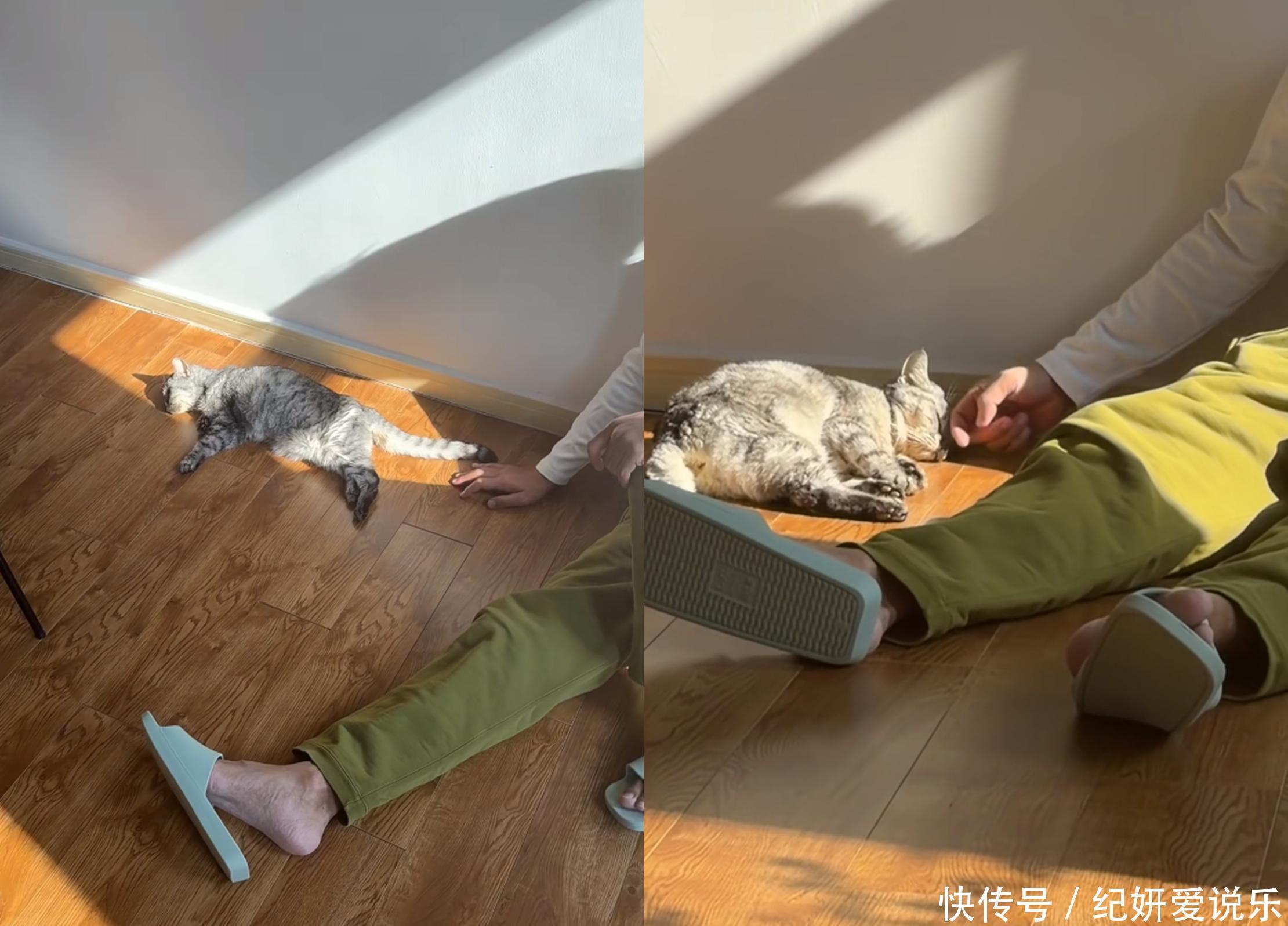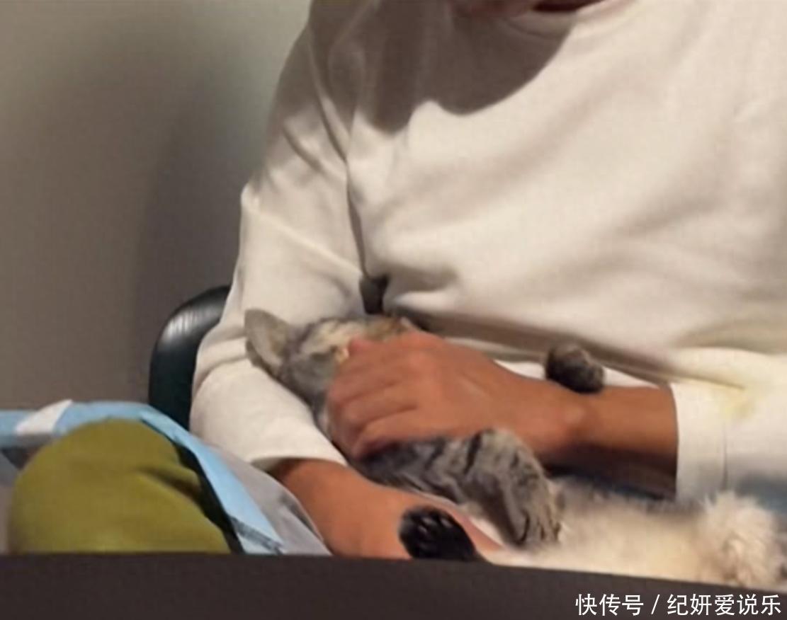 画面里,他一身居家打扮,坐在地板上,怀里抱着一只灰白相间岁老猫,叫小喵。手上的动作特别轻,一只手稳稳托着,另一只手缓缓地顺着毛,那猫舒服得四脚朝天。这可不是普通的宠物,是他𱐕岁就开始养的伙伴,前不久被查出肿瘤晚期。